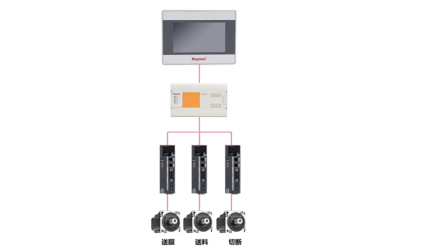 睿能X5系列PLC帶有電子齒輪功能,可實(shí)現(xiàn)多軸同步運(yùn)行;同時(shí)自帶旋切功能快,可方便實(shí)現(xiàn)定長(zhǎng)切割,并保證切割精度。
