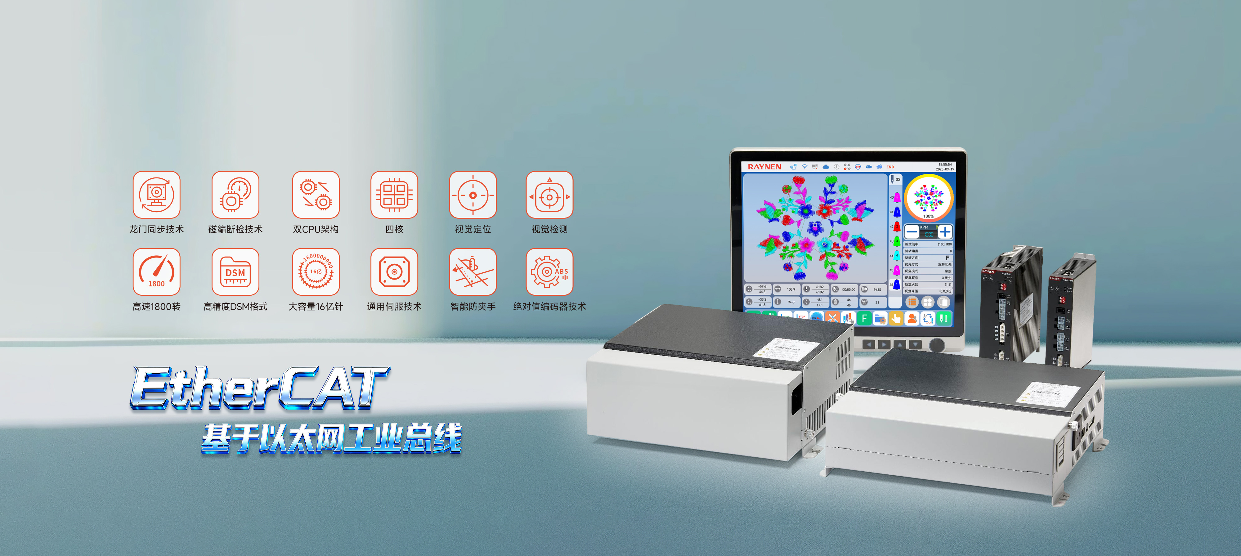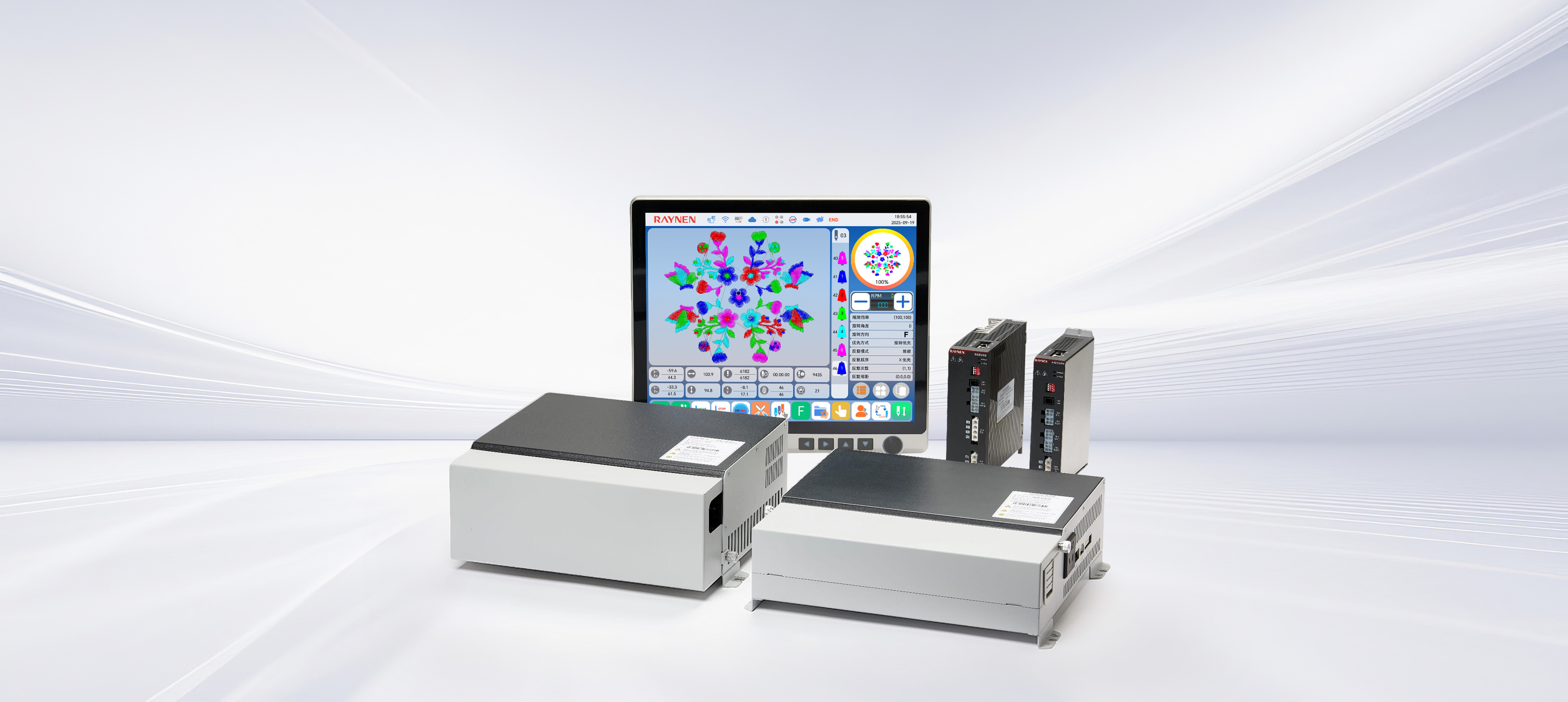 S600系列刺繡機電控系統(tǒng)通過緊湊的機身設(shè)計、標準化部件應(yīng)用,提升了空間利用率和設(shè)備維護便捷性,降低了運營成本。其無線操作屏、高精度絕對值編碼器伺服控制系統(tǒng)、全新通用專機伺服等技術(shù)創(chuàng)新,不僅提高了生產(chǎn)效率和產(chǎn)品質(zhì)量,還通過移框智能防夾設(shè)計、安全光幕和高清顯示屏增強了設(shè)備的安全性和操作性。同時,配置了智慧工廠網(wǎng)絡(luò)管理接口,實現(xiàn)了設(shè)備的遠程智能化管理,并在精度控制上達到行業(yè)領(lǐng)先水平。