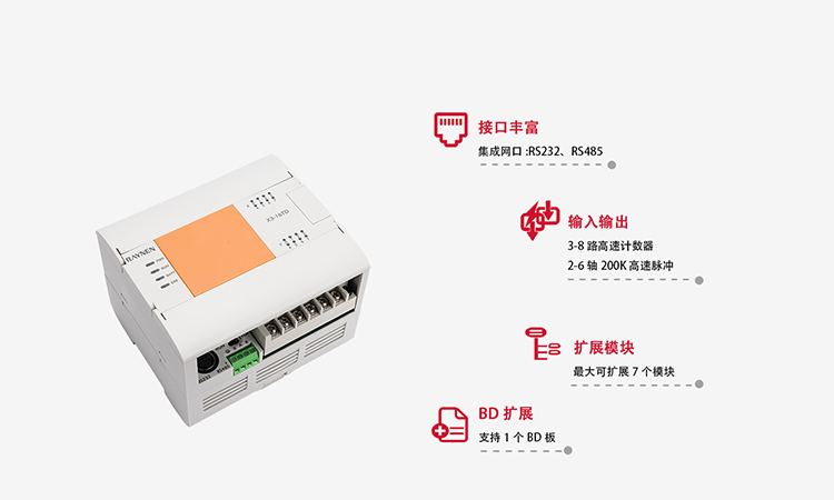 ▲ 具備2-6 軸高速脈沖輸出,高速計(jì)數(shù)、直線插補(bǔ)和圓弧插補(bǔ)等運(yùn)動(dòng)控制功能