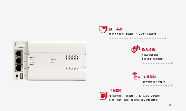 ▲ 支持EtherCat 總線通訊,具備直線插補、圓弧插